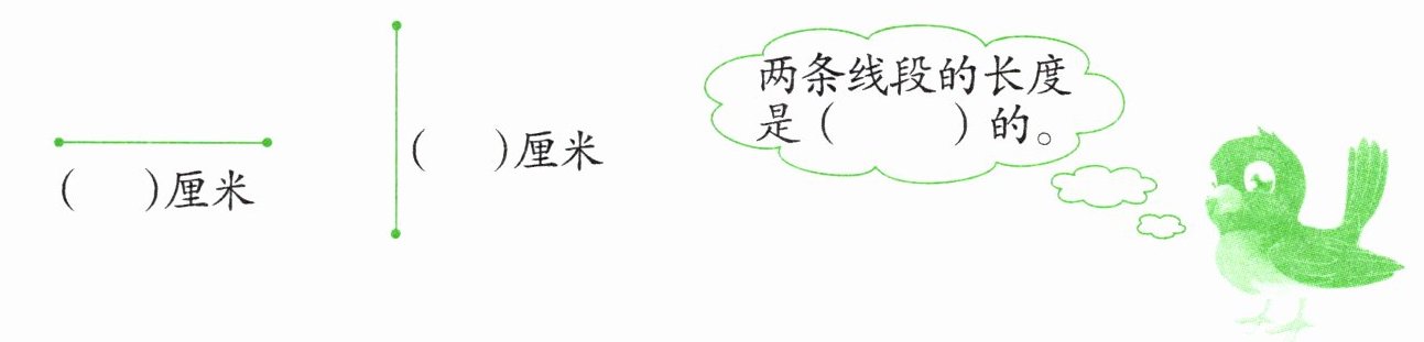 (1)画一条长2厘米的线段。 (2)画一条比3厘米长2厘米的线段。