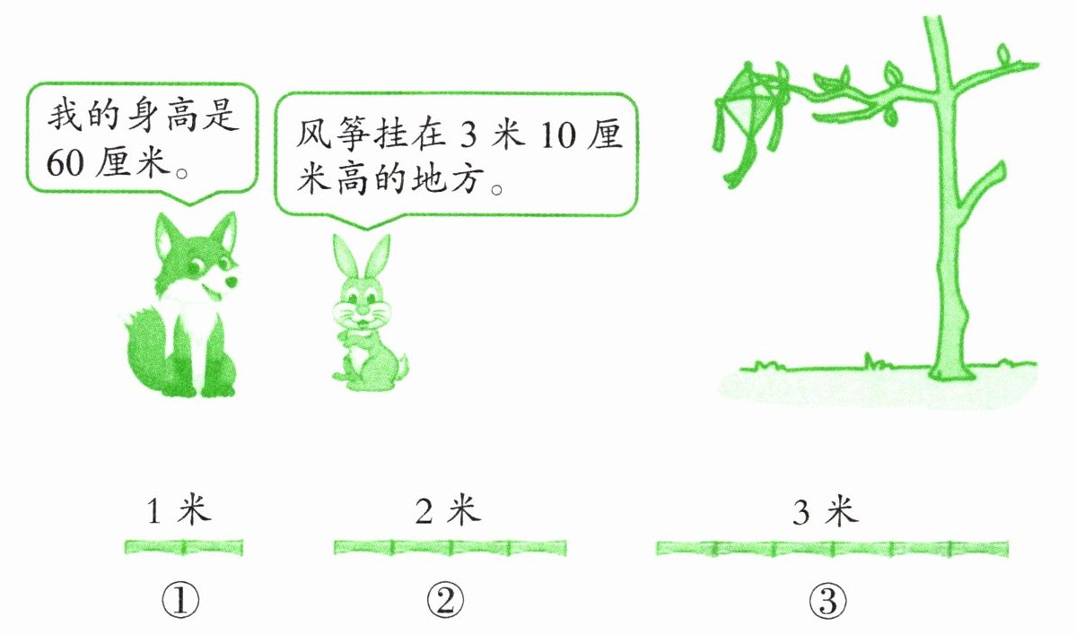 (2)小狐狸和小兔子放风筝,不小心将风筝挂到了树上,小狐狸选(