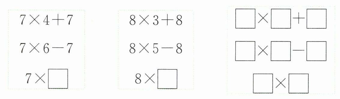 (2)每组算式的得数相等,请在$□$里填上合适的数。