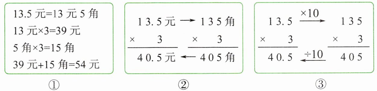 (1)硕硕在超市看到的椰子饼的价格为13.5元/千克,购买3kg需要多少元?下面计算方法中正确的是(