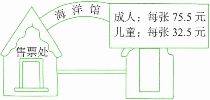 5. 亮亮和妹妹在爸爸、妈妈的带领下去海洋馆游玩。他们购票一共需要多少元?