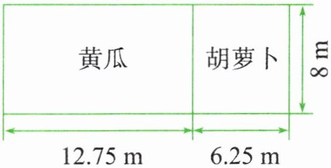 (12.75-6.25)×8=52(m²) 答:种黄瓜的面积比种胡萝卜的面积大52m²。