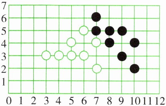 4. 在五子棋游戏中,只要有五个棋子连在一起,就能赢对方。黑棋放在(6,6)或(11,1)的位置就能赢白棋,白棋如果想赢黑棋应放在( )或( )的位置,请你在图中画出来。(用空心圆圈表示)