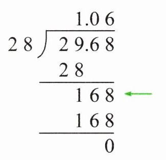 (1)如图是算式$29.68÷28$的竖式计算过程,箭头所指的“168”表示168个(