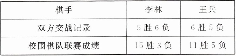 5. 在举行围棋决赛前夕,学校公示了参加决赛的两名棋手的有关资料。