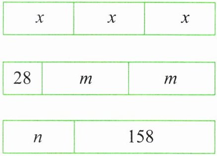 6. 迁移应用 下图为三个大小、形状完全相同的长方形,根据图中的数量关系写出三个不同的方程。