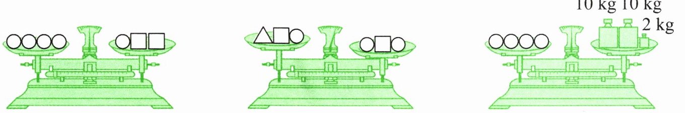 (2)4◯=1◯+2□ 4O=22 O=5.5 5.5+2□=22 □=8.25 答:□的质量是8.25kg。