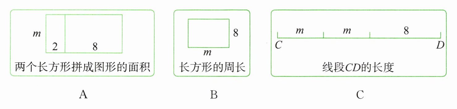 (3)三位同学分别画图表示自己对$2m + 8$这个式子的理解,正确的是(