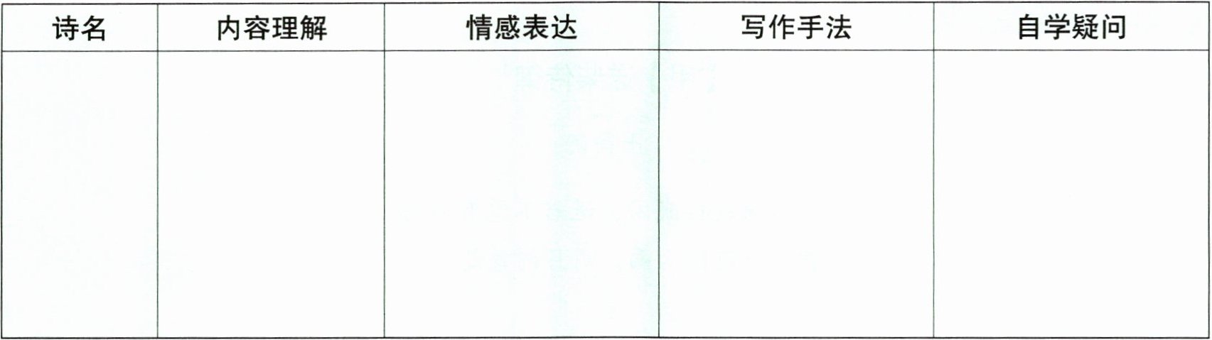 |诗名|内容理解|情感表达|写作手法|自学疑问|