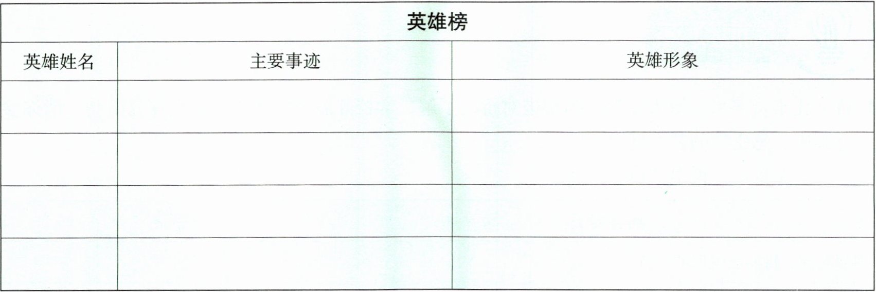 | 英雄姓名 | 主要事迹 | 英雄形象 |