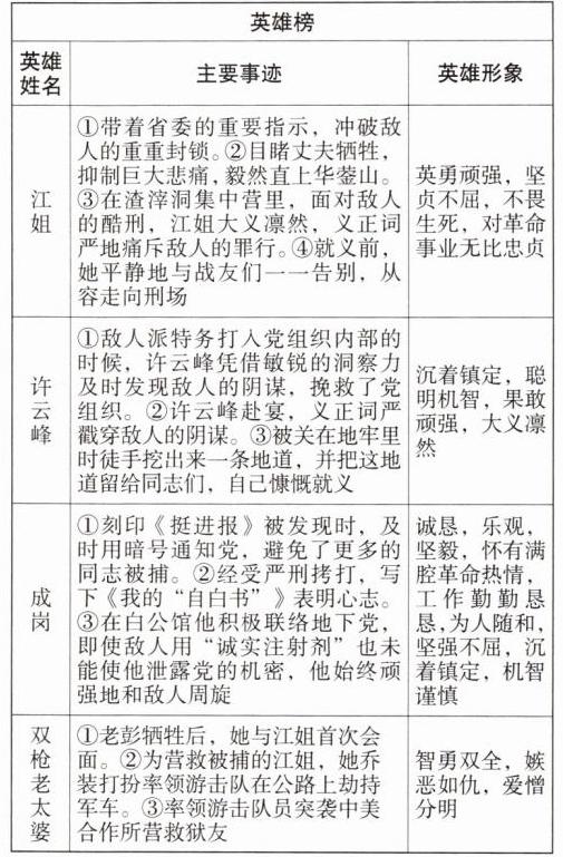 4. 《红岩》一书中刻画了一群英雄人物。请根据小说内容,选取你印象深刻的几位英雄,填写下面的英雄榜。