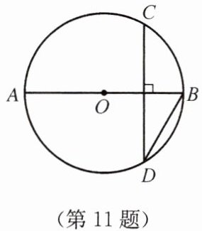 11. 如图,AB是⊙O的直径,弦CD垂直平分OB,则∠BDC的度数是(
