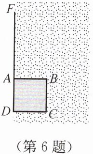 6. 如图,在小路DF的右侧是一片草地,紧靠小路建有一正方形小屋ABCD,现用一根长为6m的绳子一端系住牛鼻,另一端系在A处.已知正方形小屋的边长为3m,那么这头牛最多能吃到多大面积草地上的草?请画出示意图.