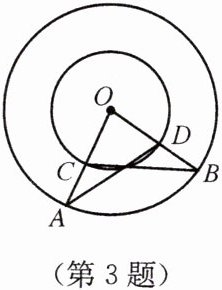 3. 如图,两个同心圆的圆心为O,大圆的半径OA、OB分别交小圆于点C、D,连接AD、BC.