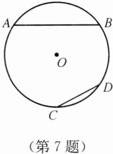 7. 如图,$\widehat{AB}的长度是\widehat{CD}$的长度的2倍.弦AB的长度是弦CD的长度的2倍吗?动手量一量,并说明其中的道理.