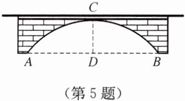 5. 如图,有一拱形公路桥,圆弧形桥拱的水面跨度$AB= 80\ m$,拱高(弧的中点到弦的距离CD)为20m,求桥拱所在圆的半径.