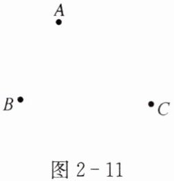 例1 如图2-11,已知A、B、C三点.作$\odot O$,使它经过A、B、C三点.