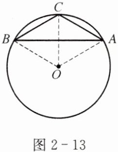 例2 如图2-13,在$\triangle ABC$中,$AC= BC= 6\,cm$,$\angle ACB= 120^\circ$.求$\triangle ABC$的外接圆的半径.