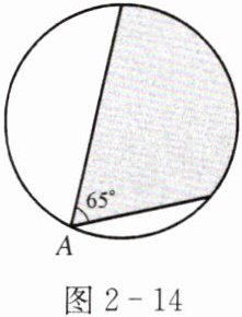 如图 2-14,有一圆形展厅,在其圆形边缘上的点 A 处安装了一台监视器,它的监控角度是$65^{\circ }$.为了监控整个展厅,最少需在圆形边缘上安装多少台这样的监视器?