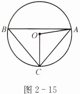 例1 如图2-15,$\triangle ABC$的顶点A、B、C在$\odot O$上,$\angle ACO= 40^{\circ }$,求$\angle B$的度数.