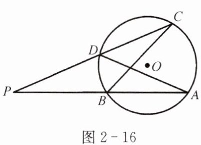 例2 如图2-16,在$\odot O$中,弦AB、CD的延长线相交于点P,且$DA= DP$.