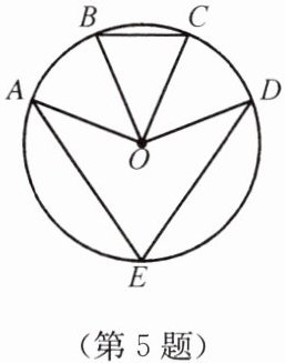 5. 如图,点E在$\odot O$上,B、C是$\widehat {AD}$的三等分点,$\angle BOC= 46^{\circ }$,求$\angle AED$的度数.