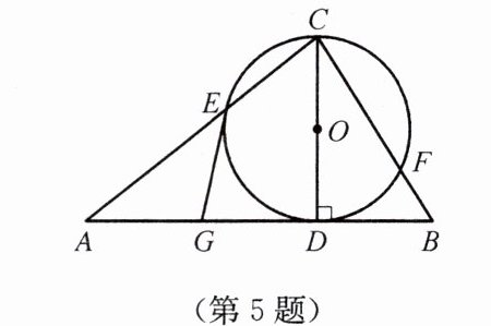 5. 如图,在$\triangle ABC$中,CD是边AB上的高,以CD为直径的$\odot O$分别交CA、CB于点E、F,G是AD的中点.
