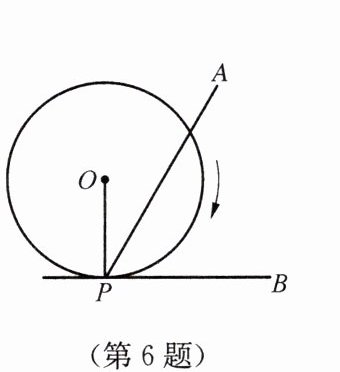 *6. 如图,$\angle APB=60^\circ$,半径为1的$\odot O$切PB于点P.若将$\odot O$沿射线PB滚动,当$\odot O$滚动到与PA相切时,圆心O移动的距离是多少?