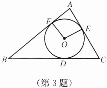 3. 如图,⊙O与△ABC的三边分别切于点D、E、F,且∠C= 60°,∠EOF= 100°.求∠B的度数.