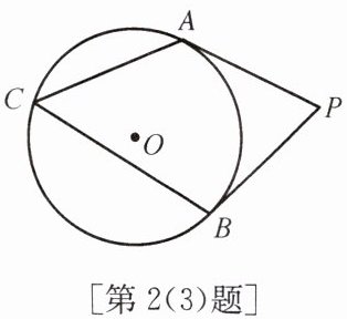 (3)如图,PA、PB分别切⊙O于点A、B,点C在⊙O上,∠P= 70°,则∠C等于(