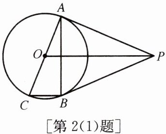 (1)如图,PA、PB是⊙O的两条切线,切点分别为A、B,AC是⊙O的直径,连接AB、BC、OP,则与∠AOP相等的角有(