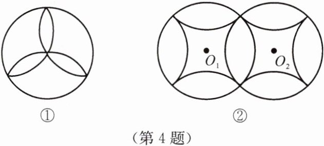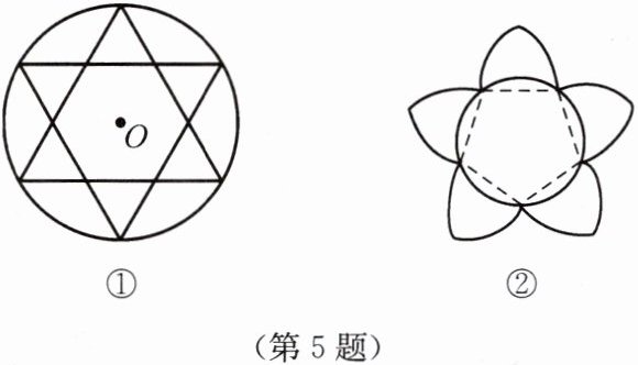 图②将圆O五等分,分别以五等分点A、B、C、D、E为圆心,