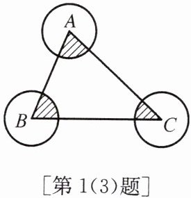 (3) 如图,⊙A、⊙B、⊙C两两不相交,且半径都是1 cm,则图中的三个扇形(即三个阴影部分)的面积之和为