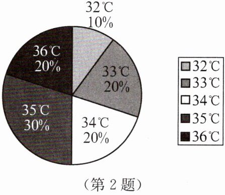 2. 某地连续统计了10天的日最高气温,并绘制成如图所示的扇形统计图.