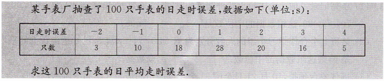 根据平均数的计算公式,把这100只手表的日走时误差加起来,再除以100即可求出平均数。