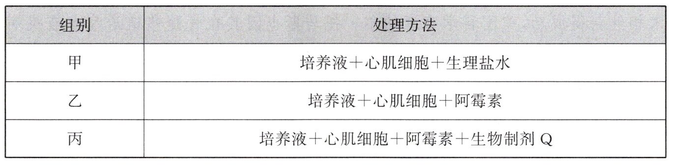 (4)阿霉素是一种抗肿瘤药物,能够抑制癌细胞增殖,但临床上发现它可能诱发心肌细胞凋亡,引起患者心脏功能障碍。为探究生物制剂Q对阿霉素导致的心肌细胞凋亡是否具有保护作用,研究者提出了以下实验设计思路: