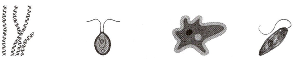 1. 同学们用显微镜观察一滴池塘水,视野中看到了以下几种生物。其中不属于单细胞生物的是(