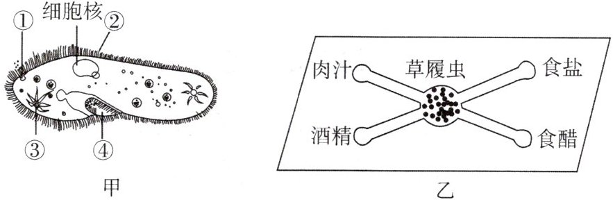 (2)为探究草履虫对外界刺激作出的反应,小组同学设计了如图乙所示的实验。实验结束时,草履虫聚集最多的位置最可能是(