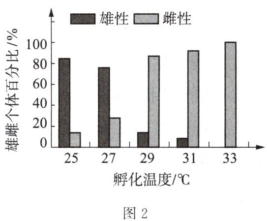 。(3)据图2分析,该种龟在25~33℃内孵化出性别的特点是
