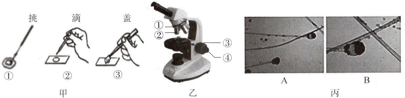 11. 储存久的橘子长“毛”了,这些“毛”是霉菌的菌丝。为了观察霉菌菌丝的形态结构,某生物兴趣小组制作了临时装片,并用显微镜进行观察。请回答下列问题。
