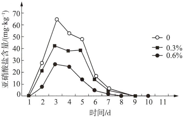 2. 某生物兴趣小组在制作泡菜时,向泡菜中添加不同浓度的食醋,数天后亚硝酸盐含量的变化结果如下图所示。下列观点不正确的是(