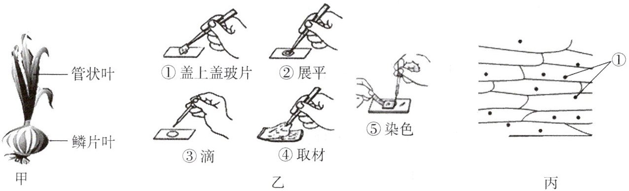 (1)图乙中,制作临时装片的正确操作顺序是______(填序号)。