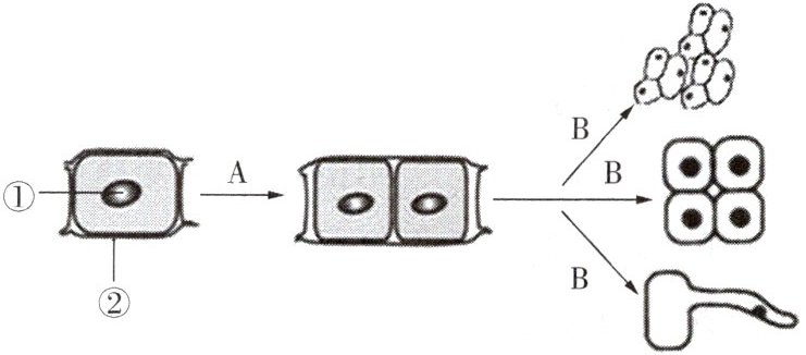 (3)图中 B 过程表示细胞分化,其结果是形成了不同的组织,在植物的根尖中存在的组织属于
