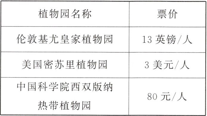 )元。(2)美国密苏里植物园的门票折合人民币(