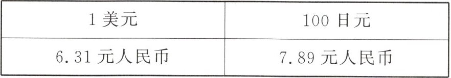 1. 美元、日元和人民币的兑换如下表。根据表格内容完成下面各题。(结果保留两位小数)
