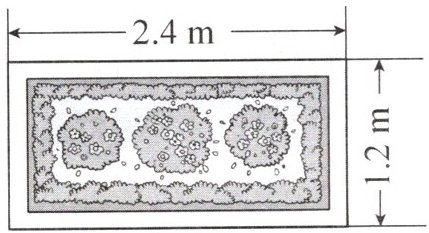 3. 如图,这个花坛的面积是多少平方米?如果花坛的周围用长 0.2 m 的大青石围起来,至少需要多少块这样的大青石?