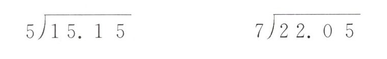 \begin{array}{r} 5\enclose{longdiv} {15.15}\end{array} = 3.03,
