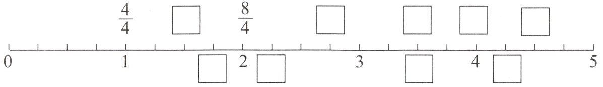 5. 如下图,在上面的$□$里填上适当的假分数,在下面的$□$里填上适当的带分数。