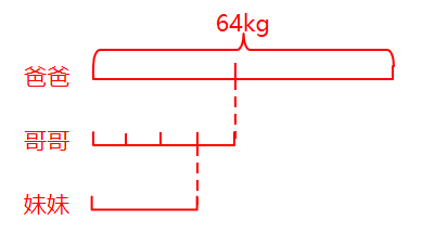 1. 爸爸的体重是64kg,哥哥的体重是爸爸的$\frac{1}{2}$,妹妹的体重是哥哥的$\frac{3}{4}$。