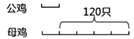 3. 养鸡场的母鸡比公鸡多120只,公鸡的只数比母鸡少$\frac{4}{5}$。养鸡场的母鸡有多少只? (先画线段图,再解答)